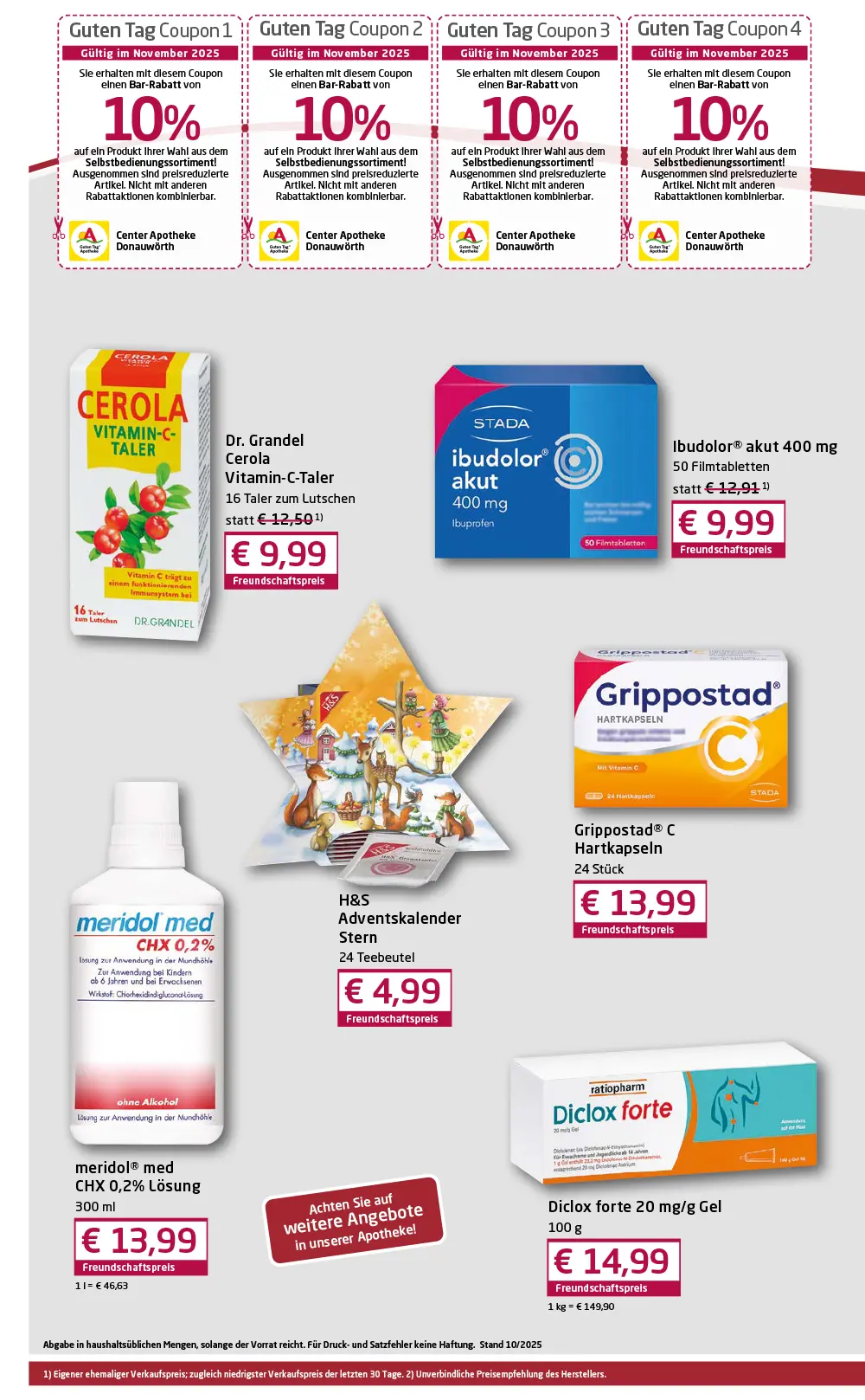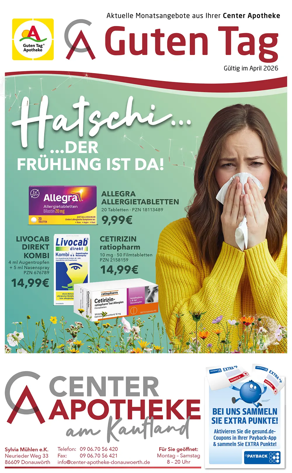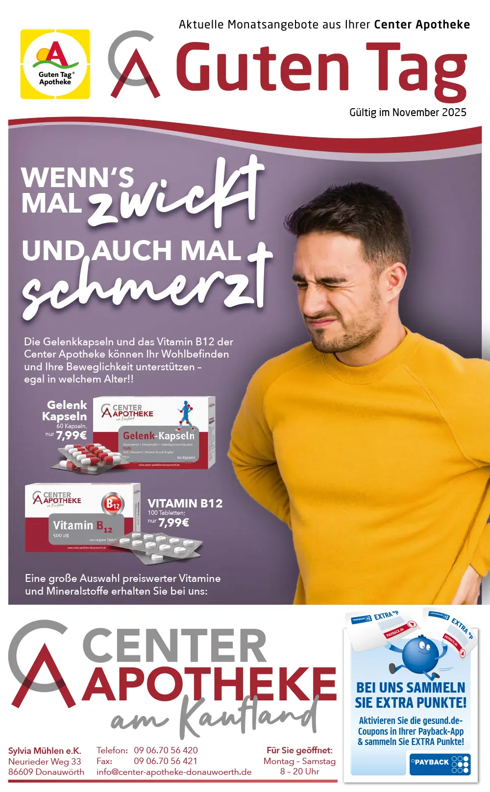 info@center-apotheke-donauwoerth.de Wir sind bestrebt, alle Anfragen zu prüfen und innerhalb von 3–5 Werktagen zu antworten. Wenn Sie Unterstützung beim Zugriff auf Teile dieser Website benötigen, stellen wir auf Anfrage gerne alternative Zugangswege bereit.
